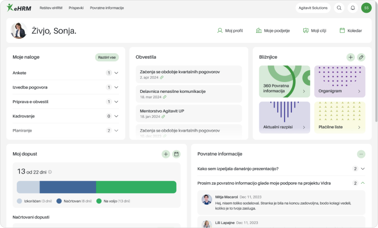 Organizovanjem redovnih razgovora i sastanaka podstičite rukovodioce i zaposlene da daju povratne informacije kao osnovu za efikasniji rad i saradnju. Možete postavljati različite tipove pitanja kako biste podstakli dijalog i dobili uvid u mišljenja o temama važnim za uspeh poslovanja. Modul omogućava kreiranje upitnika za različite profile ili tipove razgovora. Definisanjem potrebnih ponašajnih kompetencija i tematskog sadržaja unutar razgovora, podstičete komunikaciju i razvoj kulture kompanije. Na kraju se svi odgovori prikupljaju u izveštaj koji se može analizirati i pružiti osnovu za odgovarajuće korake.